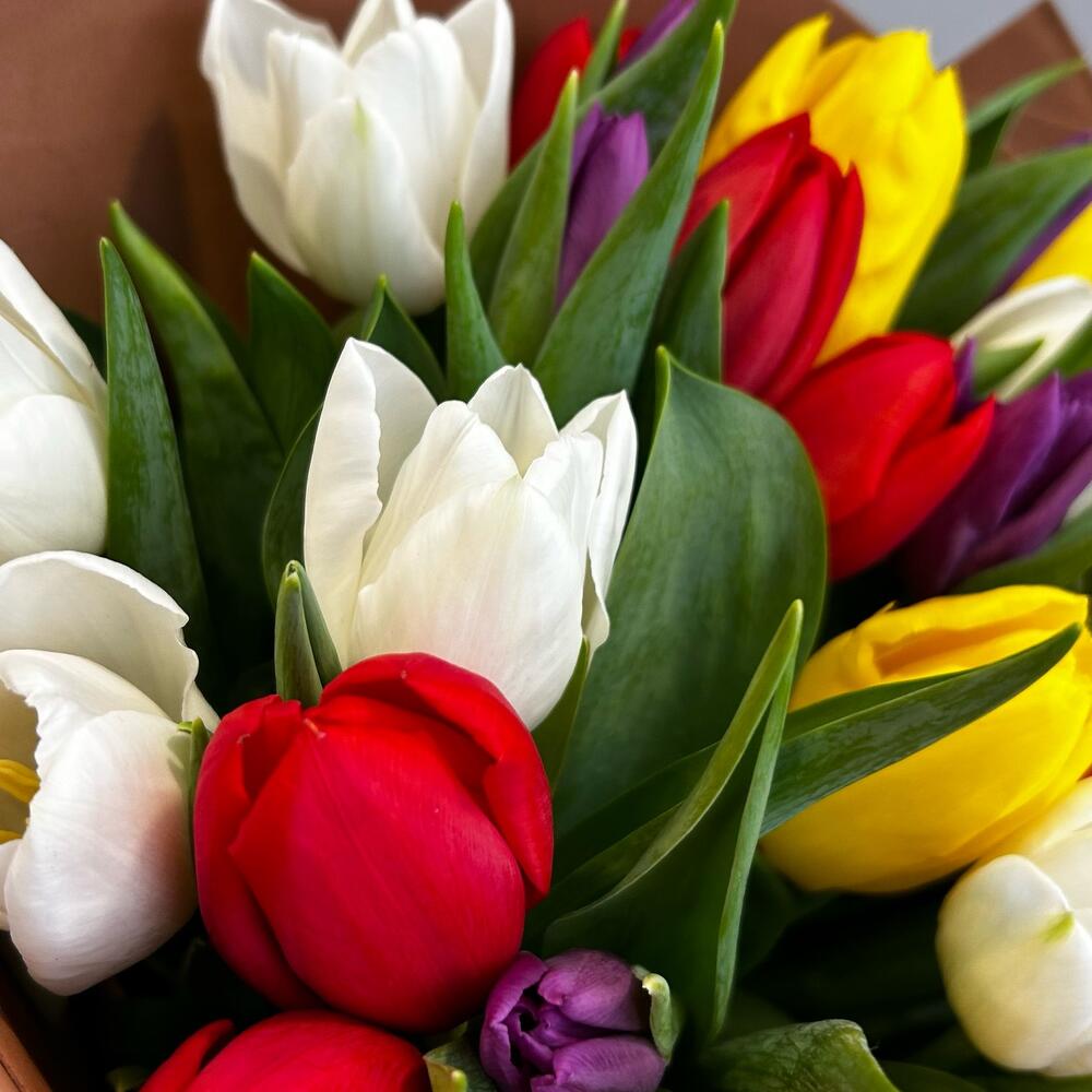 Букет из 35 разноцветного тюльпана