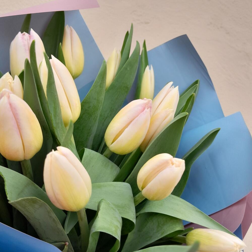 Тюльпан – 15 шт.Лента атласная – 2 шт.Упаковка дизайнерская – 3 шт.