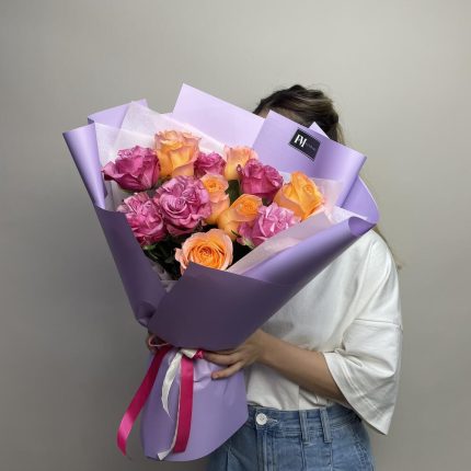 15 бело-розовых роз Киев